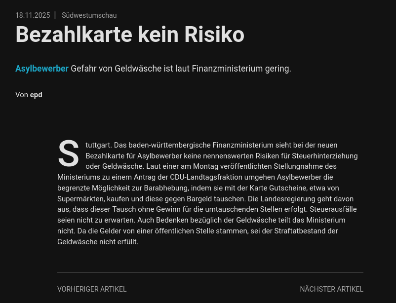 Eine Äußerung des baden-württembergischen Finanzministeriums vom 17.11.2025: